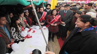 Governor N N Vohra and First Lady Usha Vohra at Red Cross Mela on Saturday.   —Excelsior/Rakesh