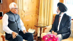 Governor, N N Vohra interacting with Director Sainik Welfare, Brig Harcharan Singh at Raj Bhavan on Wednesday.