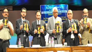Governor N N Vohra releasing a book during a conference in KU on Wednesday.