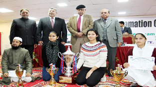 Governor N N Vohra with prize winners of declamation contest held at BGSB University Rajouri.