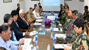 Governor NN Vohra chairing a meeting at Srinagar on Thursday