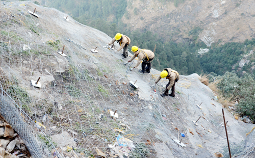The methodology being utilised for protection, treatment and stabilisation of Trikuta Mountain slopes comprises interventions which involve highly sophisticated techniques like installation of ‘High Energy Absorption Rockfall Barriers’, ‘High Tensile Strength Steel Wire-Mesh’, ‘Rolled Cable Net’ and concrete work including shotcrete, cladding, drilling grouting, anchoring as well as other site specific treatments.