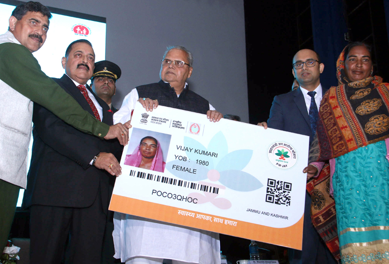 Governor Satya Pal Malik at the launch of Ayushman Bharat Pradhan Mantri Jan Arogya Yojana in Jammu on Saturday.