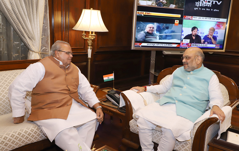 Governor Satya Pal Malik in a meeting with Union Home Minister Amit Shah on Saturday.