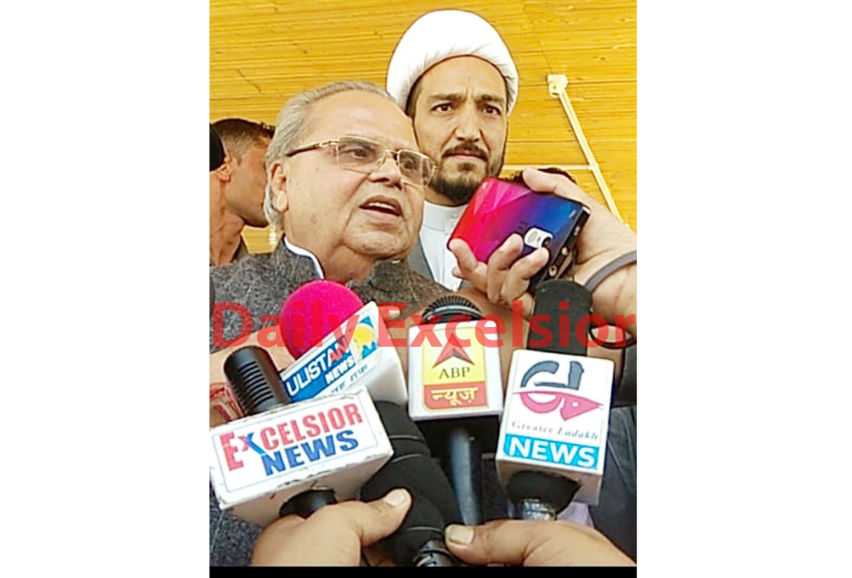 Governor Satya Pal Malik speaking to media persons in Kargil on Friday. JAC Kargil chairman Sheikh Nazir is also seen. -Excelsior/Basharat Ladakhi By Daily Excelsior - August 30, 2019 Share FacebookTwitterWhatsAppPinterestLinkedinCopy URLTelegramEmailTumblrReddItPrintKoo Governor Satya Pal Malik speaking to media persons in Kargil on Friday. JAC Kargil chairman Sheikh Nazir is also seen. -Excelsior/Basharat Ladakhi Governor Satya Pal Malik speaking to media persons in Kargil on Friday. JAC Kargil chairman Sheikh Nazir is also seen. -Excelsior/Basharat Ladakhi Follow our WhatsApp channel