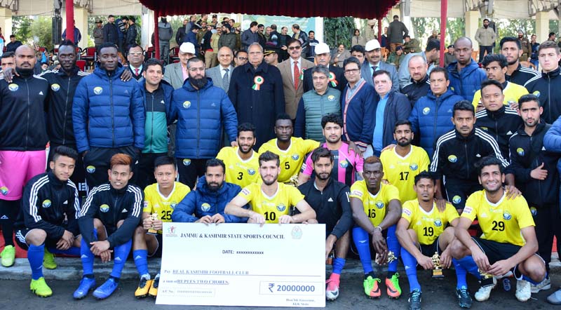 The Real Kashmir Football Team was presented a cheque of Rs 2 crore as per the decision of the State Administrative Council (SAC) taken on January 14, 2019, under the chairmanship of Governor Satya Pal Malik, who had accorded sanction to the grant of Rs 2 crore as financial assistance to the Real Kashmir Football Club annually for a period of three years, beginning 2018-19.