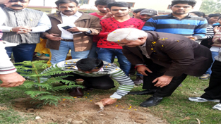 DDC Ajeet Kumar Sahu planting sapling in GCE premises on Monday.