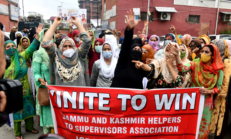 “They have not even given us a notice period before going ahead with the disengagement, even as the wages for the 3 years is still lying pending-it is nothing, but sheer injustice with us,” Nuzhat, general secretary J&K Helpers to Supervisors Association said.