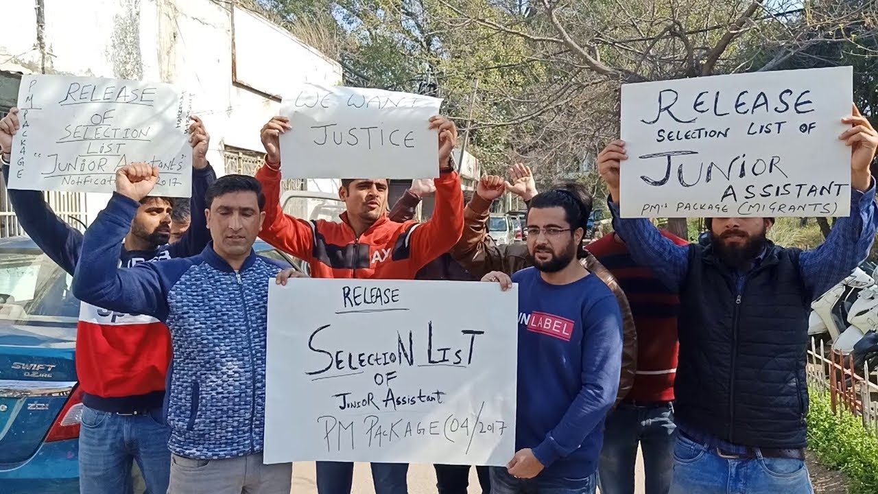 But much to the chagrin of displaced youth that the advertisements were issued under various notifications in 2017 for about 1450 posts and written tests and interviews were conducted for the same but the orders for about 1000 selected candidates were issued while the 450 aspirants for the posts of Junior Assistants in various departments have been left to bite the dust as appointment orders in their favour were not issued despite the lapse of three years.