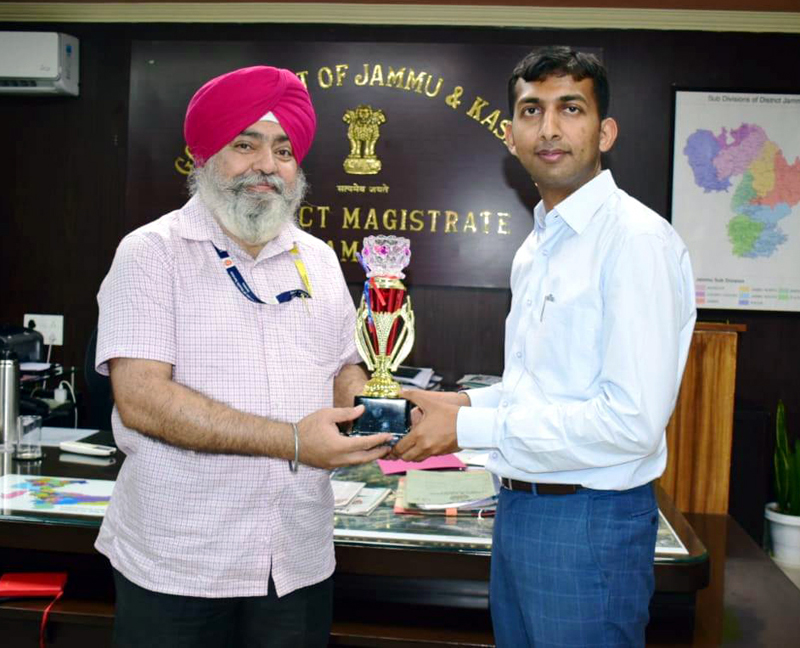 Deputy Commissioner Jammu, Anshul Garg handed over the award to the Medical Superintendent Government Hospital Sarwal Dr. Harbaksh Singh in his office chamber, here today.