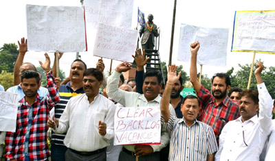 Members of Dalit communities gathered under the statute of Dr BR Ambedkar at Ambedkar Chowk, Jammu under the ages of All India Confederation of SC/ST/OBC Organisations J&K and held a brief protest. The members alleged that all successive States and Central Governments cheated SCs for not implementing the Poona Pact Agreement in toto which refers to an agreement between Dr Ambedkar and Mahatma Gandhi signed on September 24, 1932 at Yerwada Central Jail in Pune.