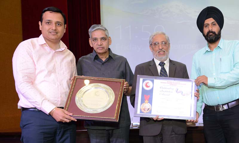 Er Arun Bangotra, Principal of Government Polytechnic Bikram Chowk, Jammu, received the award from Dr Anil D Sahasarbudha, Chairman All India Council for Technical Education (AICTE). The Principal was accompanied by K S Bhatia, HOD Mechanical.