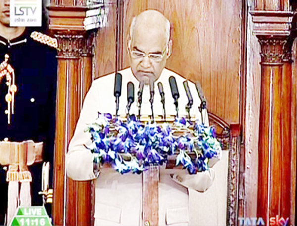 Mr Kovind emphasized that the Government was committed to “empowerment and not appeasement” of minorities. To the thumping of desks, he said India had secured representation in the International Tribunal for the Law of the Sea, International Maritime Organization and Economic and Social Council and in a keenly contested election to the International Court of Justice, India emerged victorious.