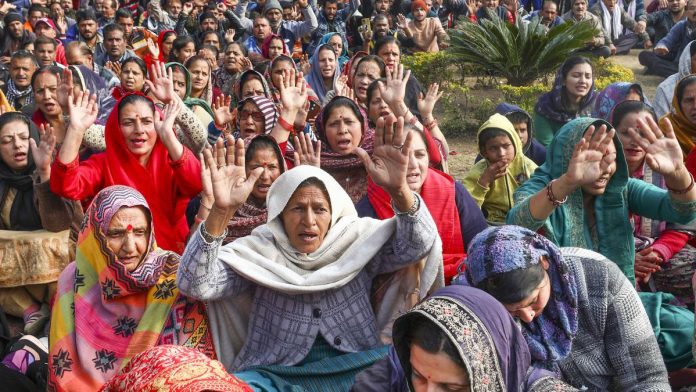 Earlier in the day, Katra-the base camp of the Shri Mata Vaishno Devi Shrine-remained paralyzed with thousands of locals, including traders, porters and palanquin bearers, sitting on dharnas at Shalimar Chowk and Shridhar Chowk, demanding release of the 18 detained Samiti leaders.