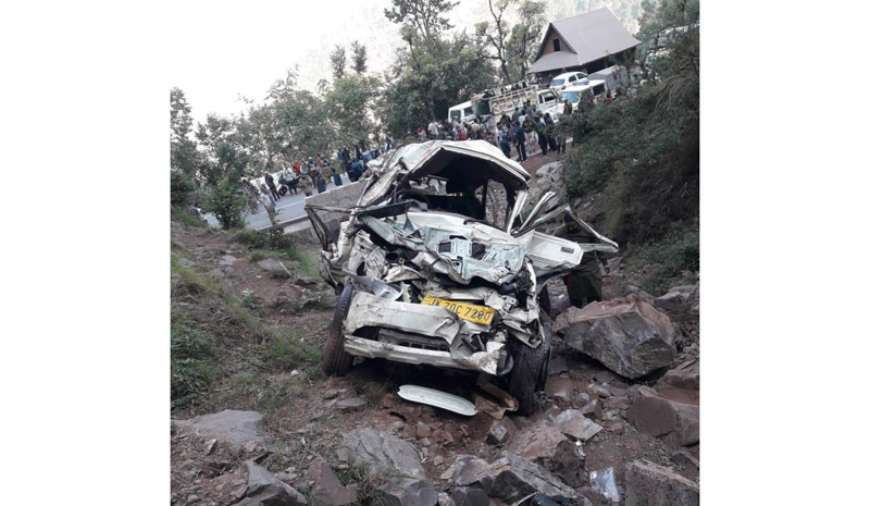 Reports said that driver of the vehicle could not negotiate a sharp curve on the hilly road and lost control over the wheels. The vehicle plunged into gorge and somersaulted several times before hitting boulders on ground. As the vehicle was completely damaged in the accident, Police and locals had to face tough time in evacuating injured persons.