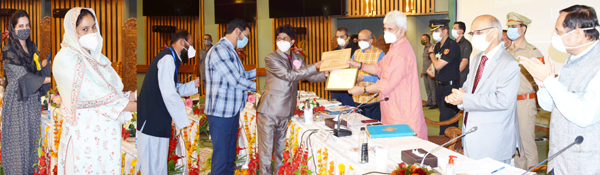 Giving due recognition to the significant role being played by the frontline Warriors in the fight against COVID-19 pandemic, the Lt Governor felicitated 20 COVID warriors. Meanwhile, six national level awardee Sarpanche and a couple of ULB representatives were also felicitated by the Lt Governor for best practices and outstanding work in their respective Panchayats and Municipalities.