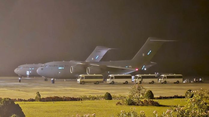 New Delhi sent a total of six military transport aircraft to Myanmar, transporting relief materials, field hospitals and rescue teams, with a majority of them experiencing GPS spoofing, they said.