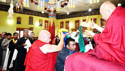 At Chowkhang Vihara, LBA executive members headed by President Tsewang Thinless offered Mandala to the Drikung Kyabgon to welcome him in Ladakh.