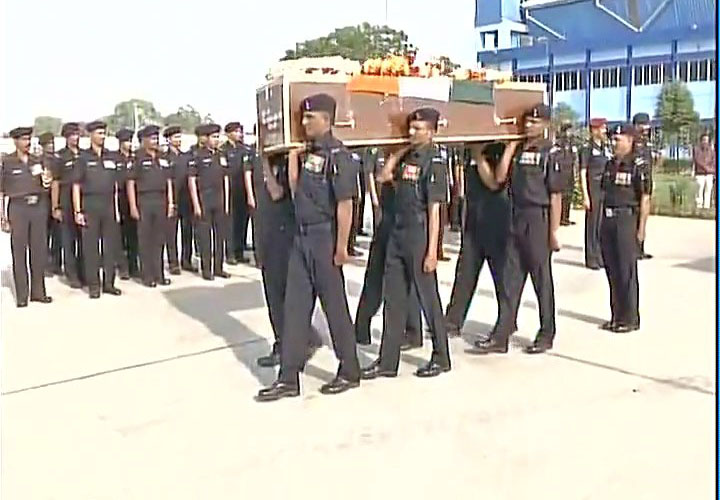 Earlier in the day, Bhadoria was given a guard of honour after his body arrived at the airport here in an Indian Air Force plane.