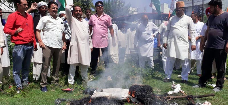 The protest was led by former Minister Er. Abdul Gani Kohli, State vice president, BJP Er. Ghulam Ali Khatana, Haroon Choudhary, prominent Gujjar Bakerwal leaders. The protesters burned the effigy of Pakistan and raised anti Pak slogans. Click here to watch video