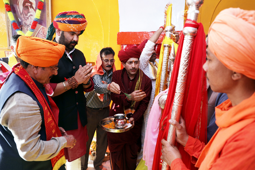 Gulchain Singh Charak, Secretary J&K Dharmarth Trust along with Ranvijay Singh attending special Pooja at Ranbireshwar Temple in Jammu.