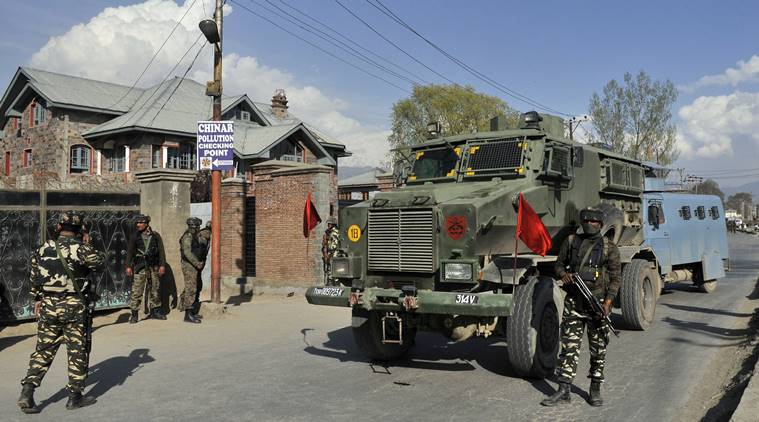 As many as six Central Reserve Police Force (CRPF) personnel were on Monday injured after some gunmen opened fire at their convoy in Pantha Chowk in Jammu and Kashmir's Srinagar.Express Photo By Shuaib Masoodi 03-04-2017