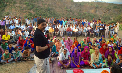 Former Minister and MLA Udhampur Pawan Gupta addressing gathering at village Seen on Wednesday.