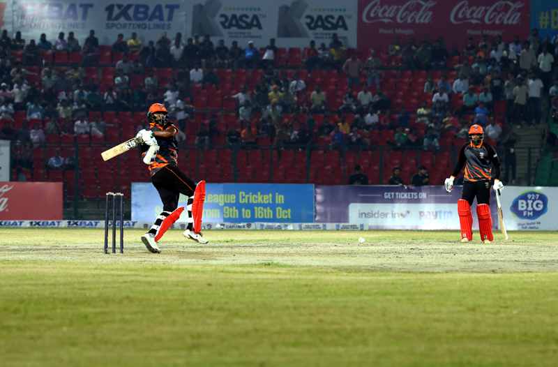 Manipal Tigers, after winning the toss and opting to bat, posted a total of 144 runs on a slower pitch. T Perera was the top scorer with an unbeaten 48 runs from 27 balls, featuring 6 fours and 2 sixes. A Perera and O. Pienaar chipped in with 18 and 11 runs, respectively.