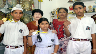 While Gurmanjeet, student of Class 7th of SD Tara Puri High School bagged gold, Janvi of Class 6th and Aryan Kangotra Class 8th won silver medals. Ankit Sharma of Class 10th also claimed silver.