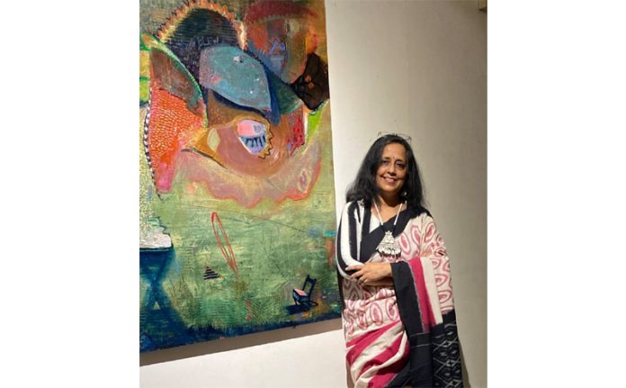 ‘Reflective Memoirs’ is made up of mixed-media paper works as well as acrylic and oil paintings on canvas to reflect various facets of Indian culture, such as hospitality, friendship and togetherness. It includes her ‘Tea Side Series’, which evolved from her participation in an art residency in Turkey and incorporates teacups as symbolic of warmth, bonding, love and togetherness.