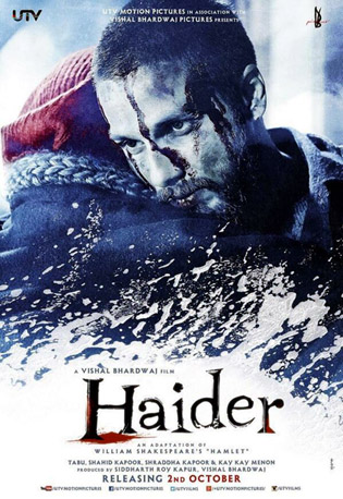 This week’s release HAIDER comes from the stable of the ‘thinking’ filmmaker Vishal Bhardwaj. After his earlier films MAQBOOL and OMKARA, Vishal brings to you yet another Shakespearean treat in the form of HAIDER, which is an Indian adaptation of Shakespeare’s HAMLET. HAIDER stars some of the superlative talents of the country in the form of Shahid Kapoor, Tabu, Kay Kay Menon, Irrfan Khan, Shraddha Kapoor and others, which makes it needless to scale the level of expectations one would associate with this film.