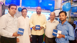 Officials from Haier and proprietors of ‘Royal Electronics’ posing during inauguration of the showroom.