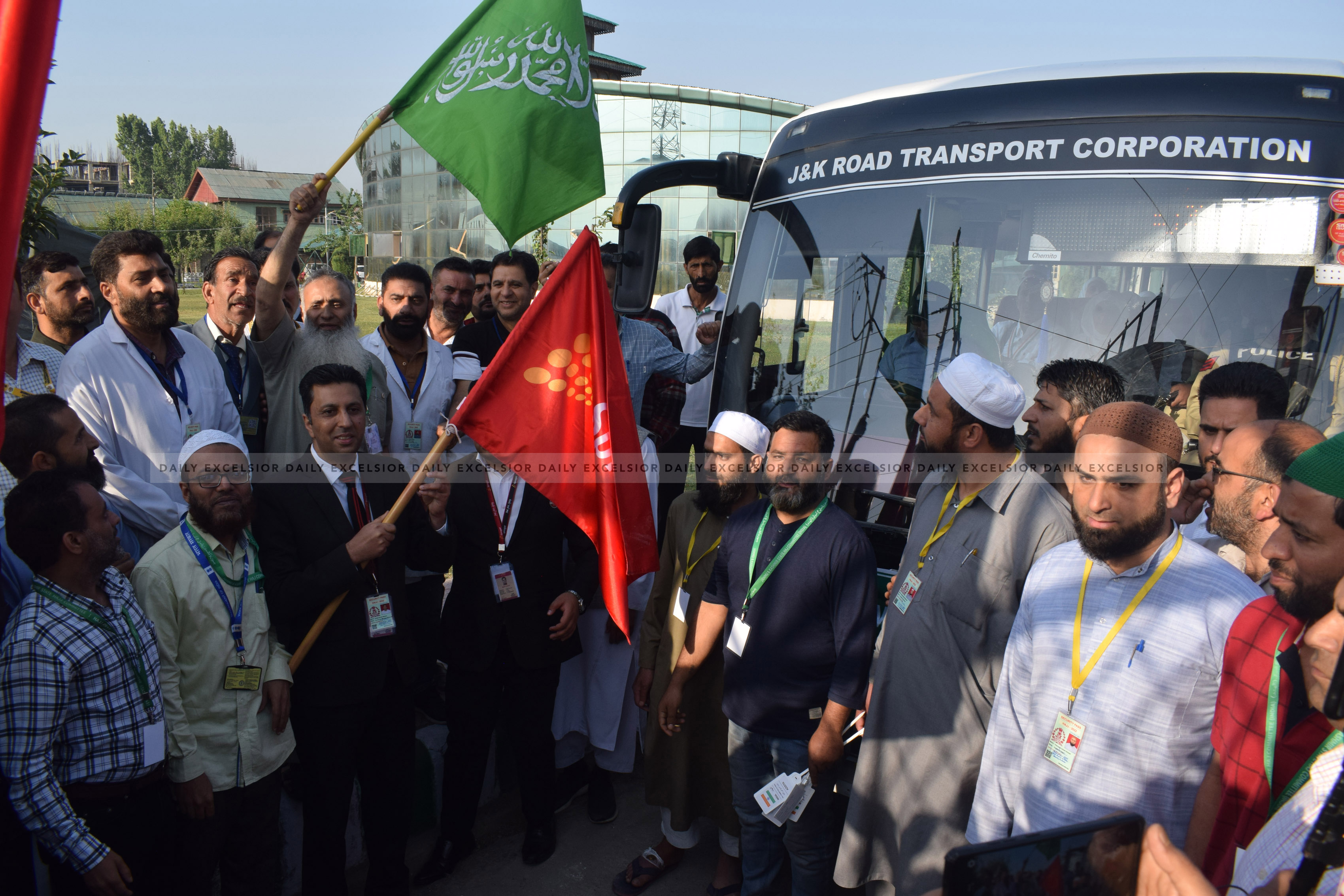 National Conference president Farooq Abdullah and vice president Omar Abdullah, too, greeted the pilgrims.