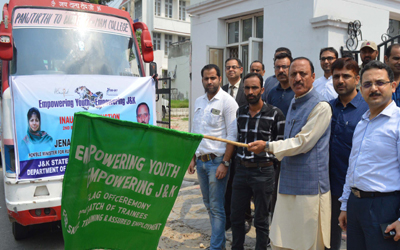JAMMU, Aug 18: Minister for Rural Development, Panchayati Raj Law and Justice, Abdul Haq Khan today flagged off the second batch of trainees for skill training and assured employment under Himayat Scheme from Panchayat Bhawan here.