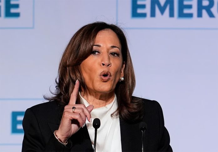 Harris addressed the 20th anniversary gala for Emerge America, an organization that recruits and trains Democratic women to run for office that grew in part from Harris’ run for San Francisco district attorney in the early 2000s.