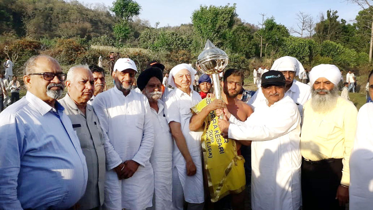 KATRA, Apr 14: Wrestler Vikas of Bahadurgarh (Haryana) lifted 28th Annual Dera Kesari Dangal 2019 title defeating Wrestler Sagar of Uttar Pradesh in the 1st malli bout at holy Shrine Dera Baba Banda Bahadur, near here.