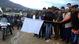 Head Priest of Shri Mata Vaishno Devi Shrine, Pujaari Ameer Chand and other dignitaries flagging off anti-drug rally at Katra on Sunday.