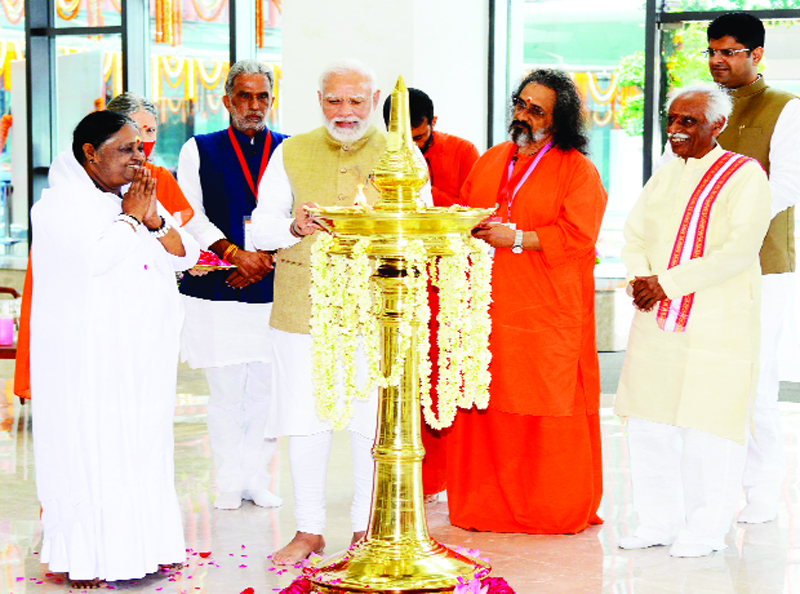 “A few days ago, the country entered the Amrit Kaal with renewed energy. In this Amrit Kaal, the country’s collective efforts are getting institutionalised, its collective thoughts are getting awakened. I am happy that in the ‘pratham bela’ of this Amrit Kaal, the country is also getting the ‘amrit’ (elixir) of Mata Amritanandamayi’s blessings,” Modi said, drawing applause from the huge crowd at the venue.