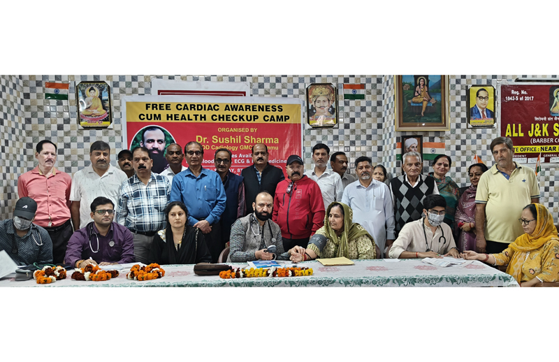 JAMMU, Mar 8: Head Department of Cardiology GMCH Jammu Dr Sushil Sharma held a day long cardiac awareness cum health check up camp at Sain Samaj Bhawan, Rani Park Jammu. He emphasized the importance of prioritizing women’s cardiovascular health as cardiovascular disease remains the most significant yet under-recognized threat. For decades, heart disease was largely considered a “man’s disease,” but research has firmly established that it is the leading cause of death among women worldwide. Recognizing the importance of women’s cardiovascular health is therefore essential, not only for medical professionals but also for society as a whole.