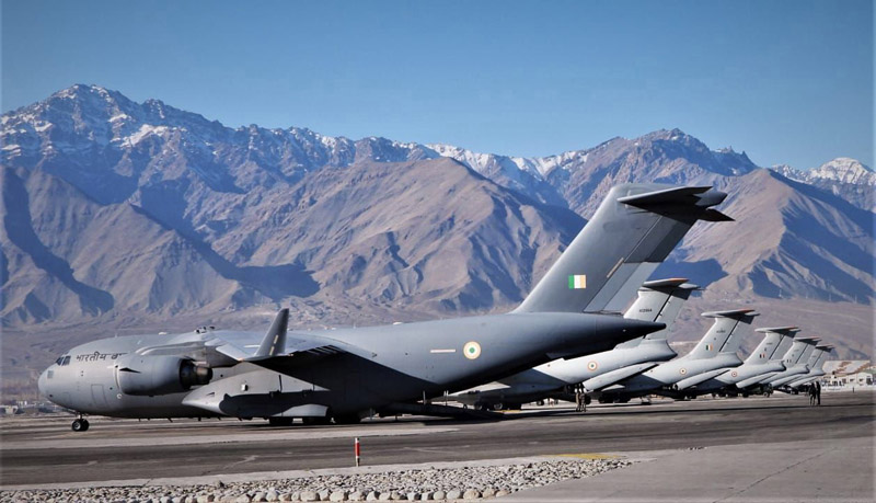 Heavy lift aircrafts of Indian Air Force participating in Op Hercules, a joint airlift to strengthen the logistics supply in the Northern sector and to augment winter stocking in the operational areas on Wednesday. (UNI)