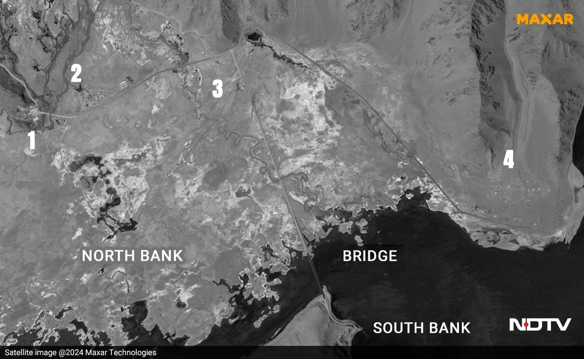 New satellite images show four structures on the northern side of the lake. The bridge lies in territory held by China since 1958 near the Line of Actual Control in Ladakh.