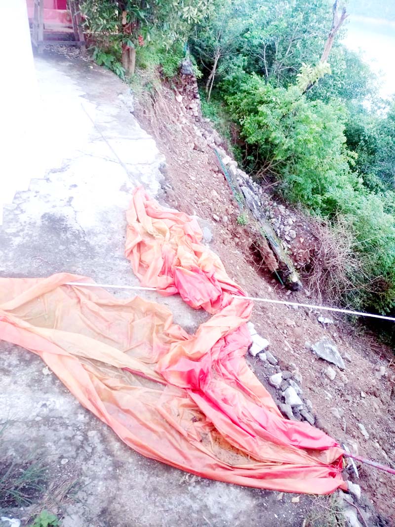 The retaining walls of the 500 year old monument at Basohli housing Mata Chanchlo temple has been damaged due to landslides triggered by the recent heavy rains.