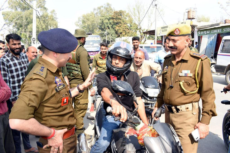 Jammu, Mar 10 : Akhnoor police and NGO Hum Saath Saath Hain carried out awareness campaign for traffic rules and safety measures today.