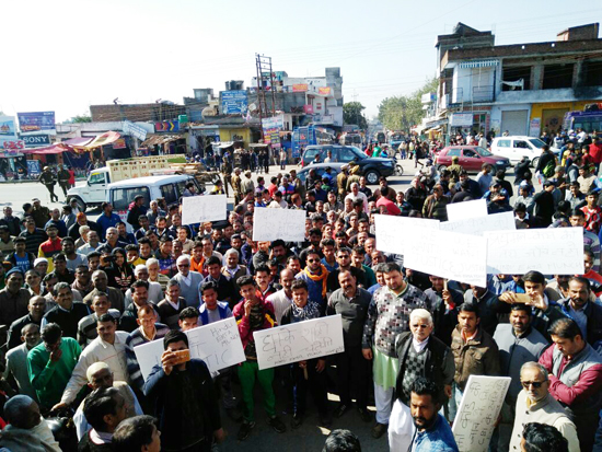 The protest march was led by the head of the Manch, Advocate Vijay Sharma and large number of people drawn from different villages including men, women and children participated in it. They were carrying Tri-Colours and pla- cards in their hands.