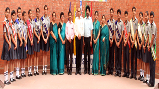 The Headmistress, conferred the badges and sashes to Urvarshi Jain (XI) as Captain Cultural Activities. Shauryakant (XI) as Sports Captain was anointed by the Co-ordinator Sports, Satinder Singh.