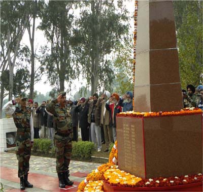 Jammu, Dec 5: The war heroes of Chhamb Battle of 1971 were remembered and paid tributes in a simple yet befitting manner at Chhamb War Memorial, Akhnoor under the aegis of Cross Sword Division, today.