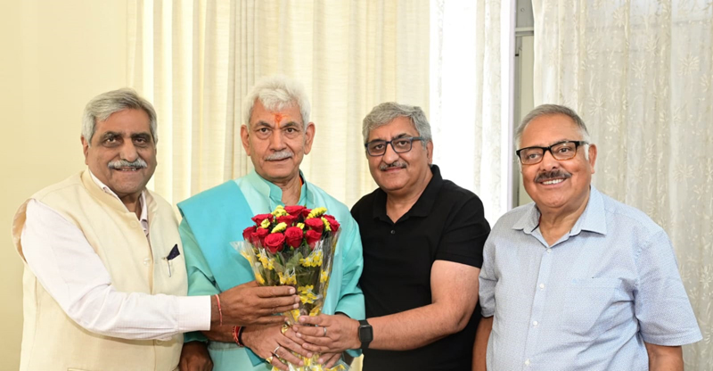 Lieutenant Governor Manoj Sinha meeting delegation of Hindu Education Society Kashmir.