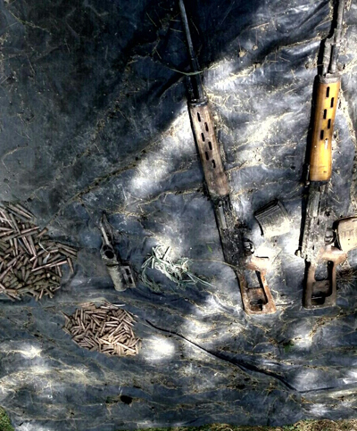 “A concerted search of the area resulted in busting a hideout from where large cache of war like stores including two sniper rifles, one UBGL, one pistol and large quantity of assorted grenades and ammunition was recovered,” the Defence spokesman added.