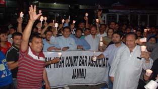 High Court Bar Association members taking out candle march at Jammu on Wednesday. -Excelsior/ Rakesh By Daily Excelsior - May 8, 2014 Share FacebookTwitterWhatsAppPinterestLinkedinCopy URLTelegramEmailTumblrReddItPrintKoo High Court Bar Association members taking out candle march at Jammu on Wednesday. -Excelsior/ Rakesh High Court Bar Association members taking out candle march at Jammu on Wednesday. -Excelsior/ Rakesh Follow our WhatsApp channel