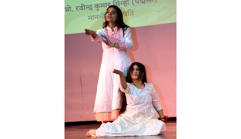 Students of the university presented a cultural programme in Hindi and presentations of music, singing, dance, dialogue and poetry recitation were included in it.